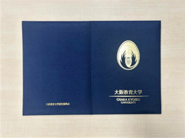 令和8年3月25日(水)に令和7年度大阪教育大学学位記・修了証書授与式が挙行され、教育振興会より卒業記念品として、卒業生・修了生1,049名へ証書ホルダーと袱紗を寄贈しました。